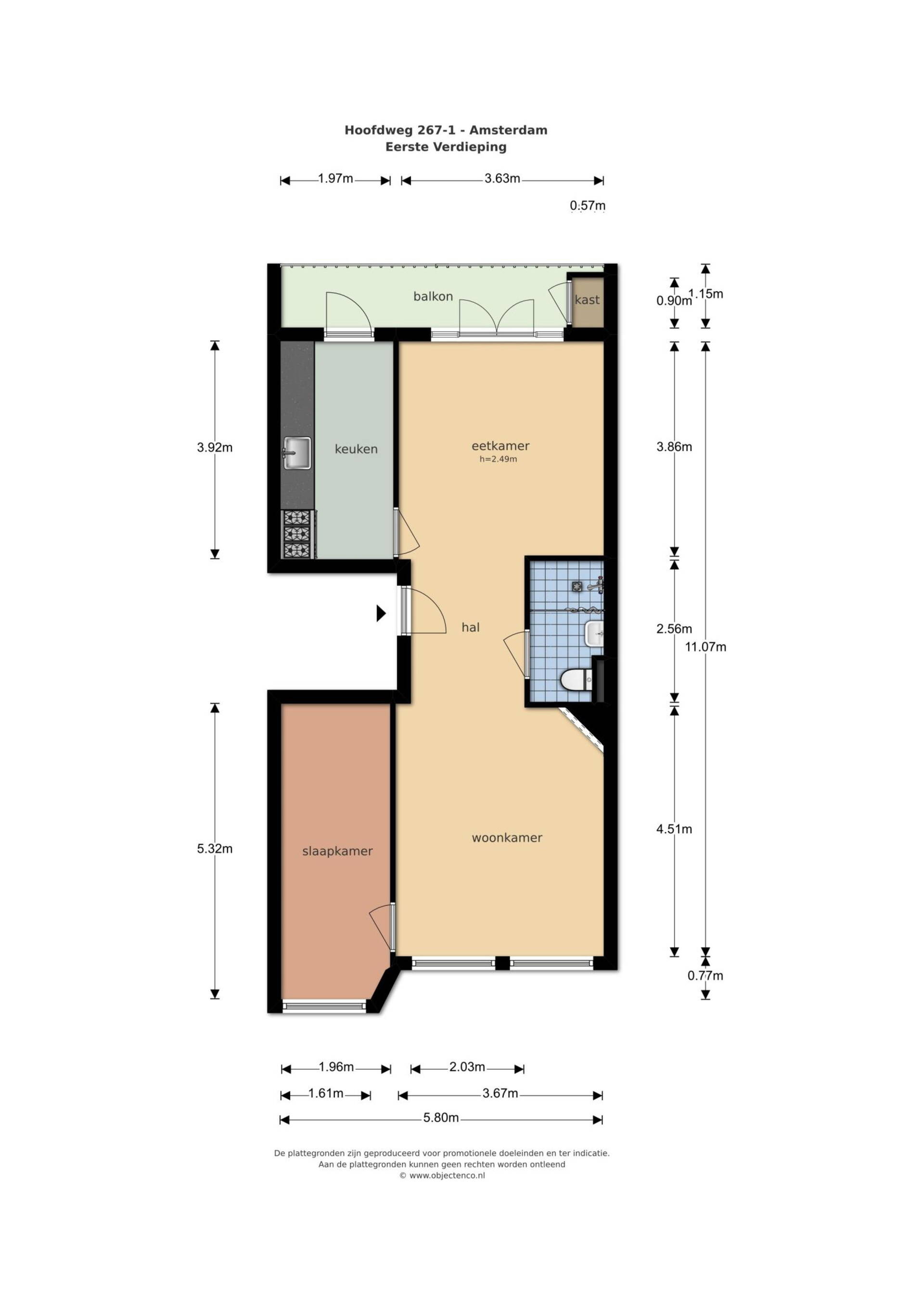 Cozy 2 room apartment with balcony located on the Hoofdweg a stone's throw from the cozy Mercatorplein.