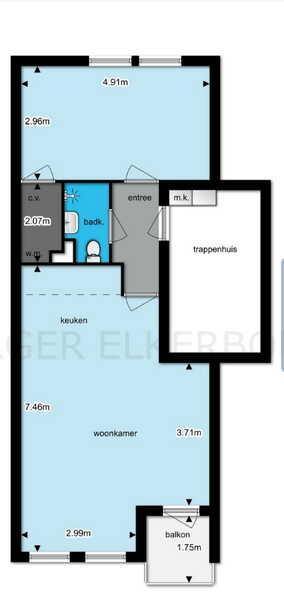 Via a staircase you reach the 1st floor. Through the common staircase you reach the private entrance of the house. You enter through the hall, which provides access to all rooms. The spacious and bright living room is located at the front, this room gives access to the balcony. The functional kitchen is located at the rear of the living room. The bathroom with walk-in shower and toilet is in the middle of the house. At the rear is the master bedroom.