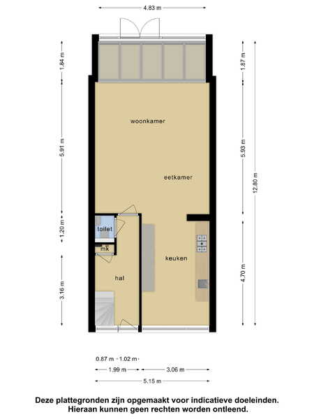 Via de verzorgde voortuin betreed je de hal, die je de weg wijst naar het toilet, de eerste verdieping en de woonkamer. De lichte woonkamer, voorzien van prachtige skylights, is de ideale plek om te ontspannen, een boek te lezen of tijd met het gezin door te brengen. Vanuit de woonkamer heb je toegang tot de achtertuin en de keuken.