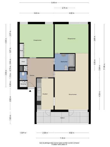 - Mogelijkheid om een 3e slaapkamer te creëren;