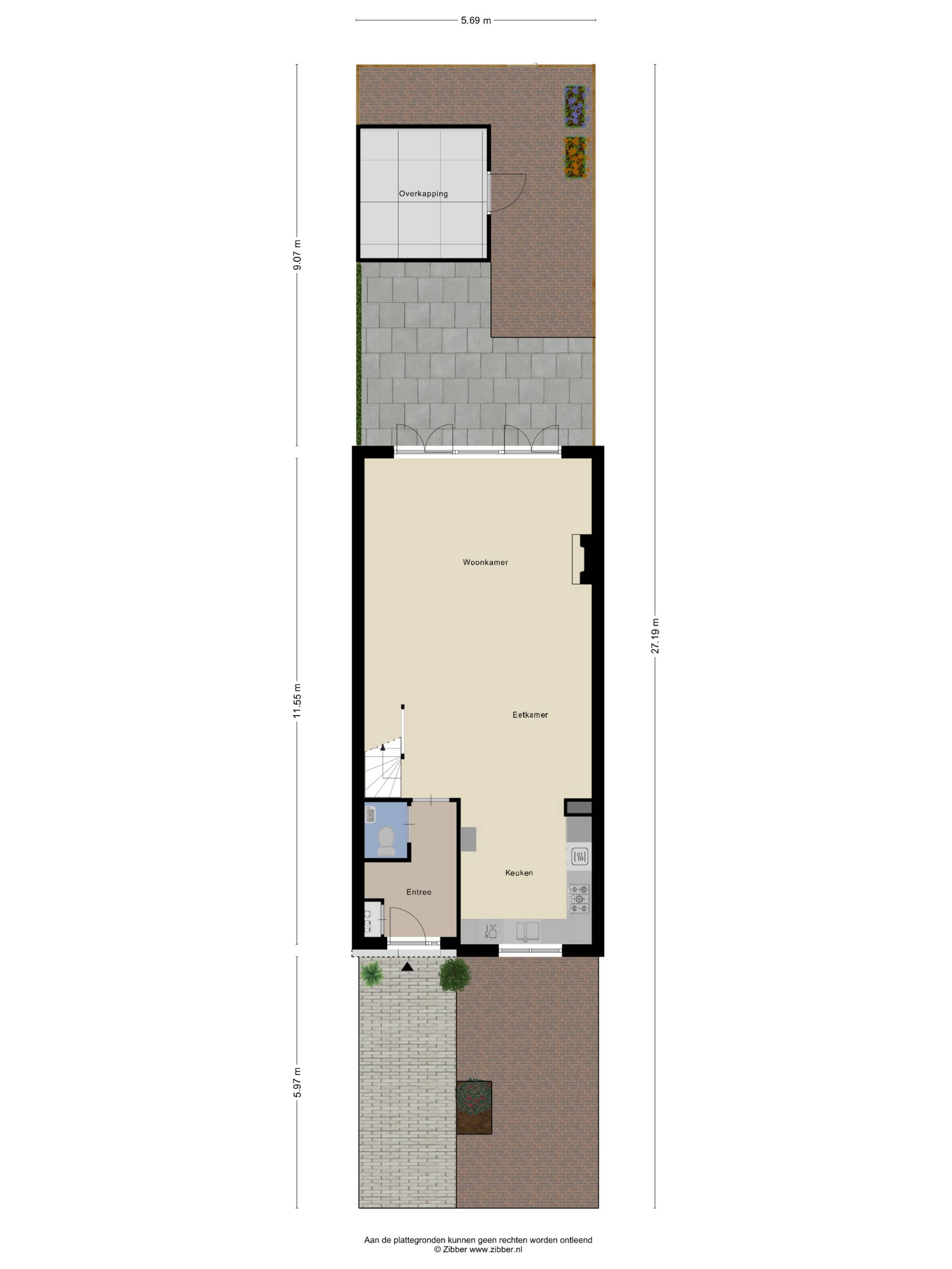 •Zonnige tuin op het zuiden van ca. 51 m²