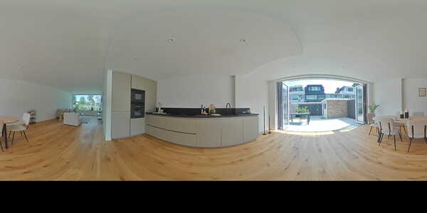 De luxe keuken is strak neergezet aan de zijkant van de woning, waardoor je helemaal vrij bent om de rest van de ruimte in te delen. Doordat de schuifpui volledig open kan, betrek je zonder enige moeite de achtertuin bij de living om zo buiten naar binnen te halen. Verder is de keuken van alle gemakken voorzien en stijlvol afgewerkt. Zo heb je behalve de greeploze kastjes een moderne inductiekookplaat met afzuigsysteem, een dubbele stoom/oven, Quooker, wijnklimaatkast en een koel/vries combinatie, allemaal ingebouwd.