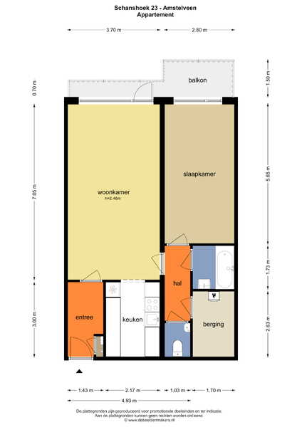 - woonoppervlakte circa 68 m² excl. balkon en berging