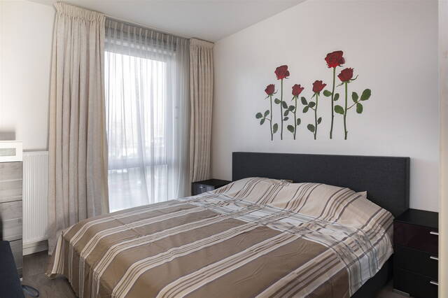 Eerste verdieping: U betreedt de woning in een nette ontvangsthal vanwaar u toegang heeft tot zowel de woonkamer als tot de hal naar de slaapvertrekken. De woonkamer is een prachtige royale ruimte met een open keuken. De strakke keuken ligt aan de voorzijde van de woning. De keuken is voorzien van diverse moderne inbouwapparatuur, waaronder een inductiekookplaat, afzuigkap, oven, magnetron en een vaatwasser. Naast de woonkamer ligt een prettige eetkamer. De eetkamer en woonkamer worden van elkaar gescheiden middels een glazen wand, wat voor een ruimtelijke sfeer zorgt. Aan de eetkamer grenst een van de twee balkons. Aan de andere zijde van het appartement liggen de slaapvertrekken. De woning beschikt over twee mooie en ruime slaapkamers. Indien gewenst, kunt u van de eetkamer eenvoudig een derde slaapkamer maken. De badkamer is ingericht met een inloopdouche en een enkele wastafel. Naast de badkamer ligt een separate toiletruimte met toilet en fonteintje. De badkamer en toiletruimte zijn beiden neutraal betegeld. De wasmachineaansluiting is netjes weggewerkt in een bergkast in de hal. Het hele appartement is voorzien van een nette, doorlopende laminaatvloer.