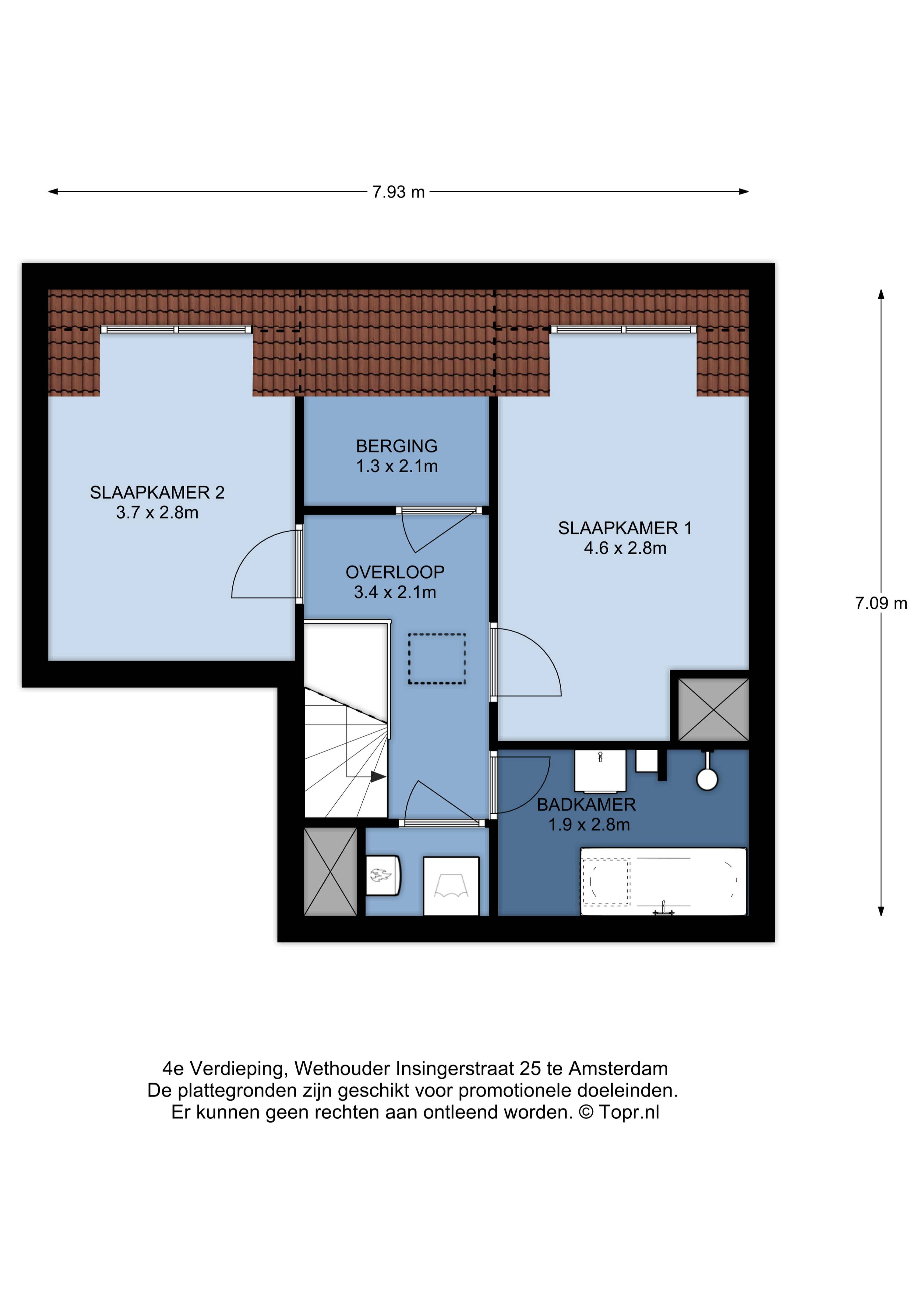 Second floor: the second floor can be reached via the fixed staircase. Here are the two bedrooms, both with laminate flooring. The luxurious bathroom has a spacious bath, walk-in shower and washbasin with vanity unit. There is also a storage room here.