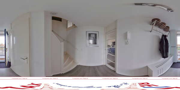 This well-maintained and bright maisonette is located on the second and third floors of this apartment complex. Through the gallery you enter the hall with the stairs to the first floor and the toilet room with floating toilet and washbasin. The comfortable living room has a light laminate floor and large windows that provide a pleasant light. The cozy sitting and dining area flows into the stylish open kitchen which is equipped with various built-in appliances including a stainless steel extractor hood, gas hob and oven. The living room also gives access to the balcony with place for a seat and where it is wonderful to relax in good weather.