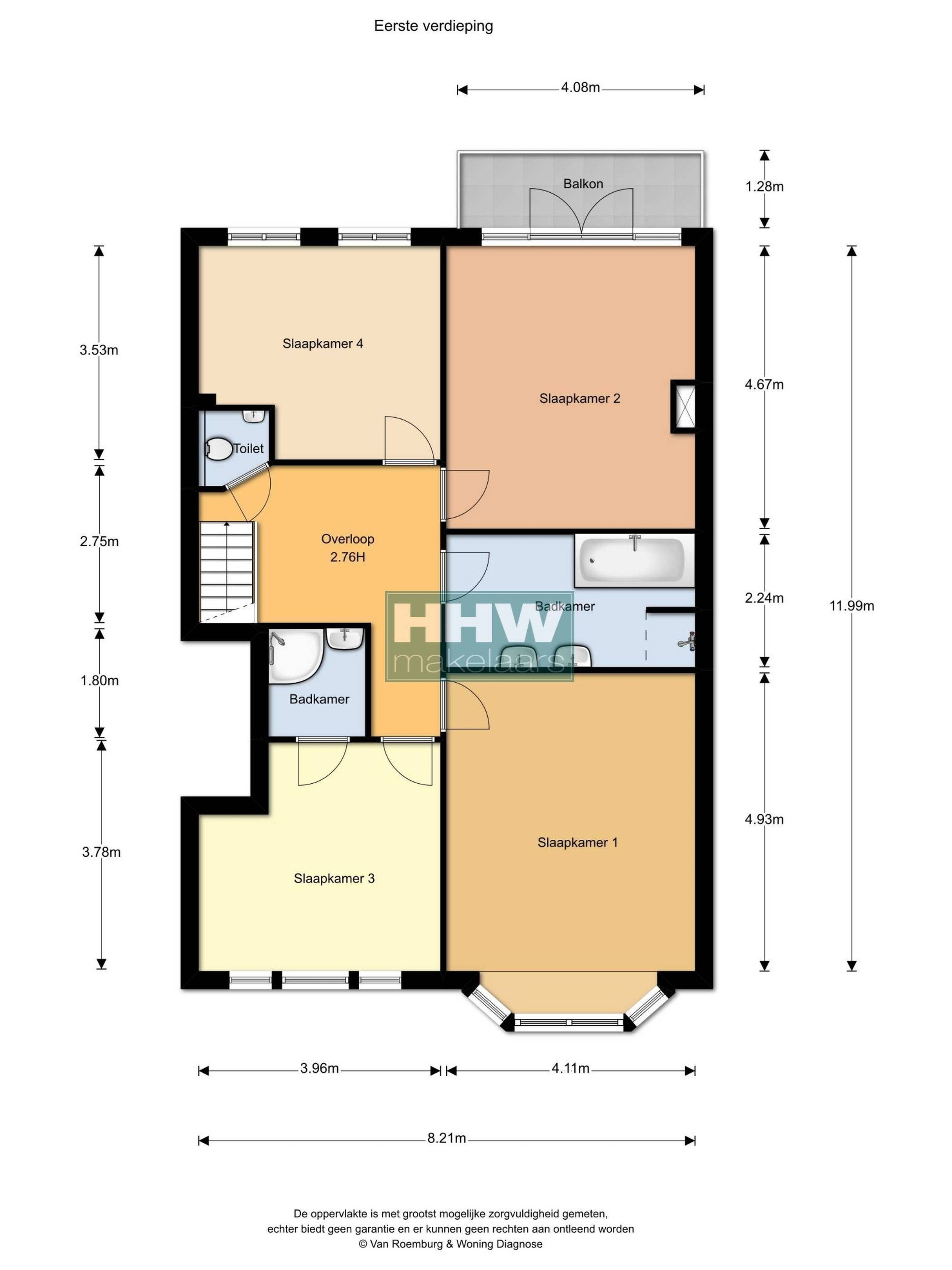 Aan de voorzijde zijn ook twee ruime slaapkamers. Een slaapkamer met gezellige erker en de vierde slaapkamer heeft een eigen badkamer die is voorzien van een douche en wastafel.