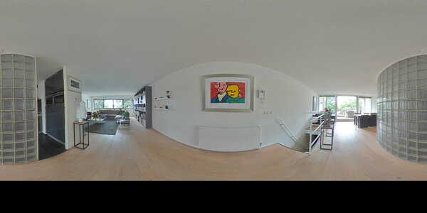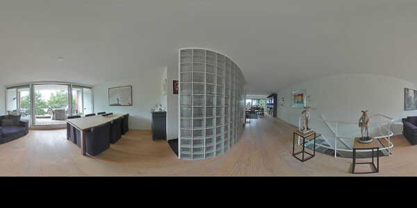 An indoor staircase takes you to the living floor on the second floor of the complex. Very surprising is the spacious and bright living room with partial open kitchen of approximately 70 m². The space is practically laid out with the seating area on the quay side with an unobstructed view of the water. In the middle the partly open kitchen that is equipped with all necessary built-in appliances and shielded by a stylish glass block wall. At the front is the dining room with two sliding doors that give access to the sunny south-facing terrace.