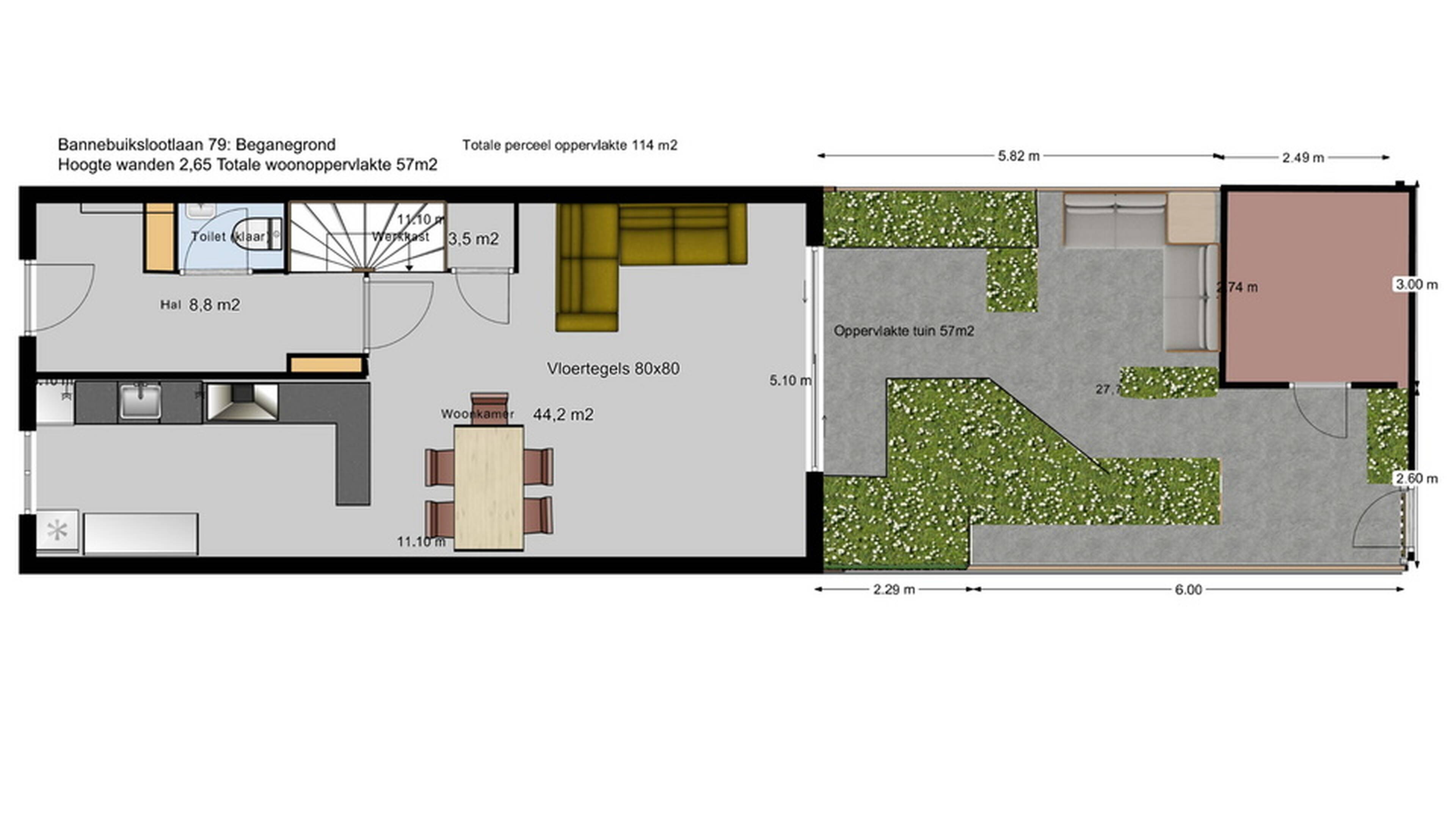De Banne Buikslootlaan 79 is een instapklare (eengezins)woning. De woning is uit 2015 en is het afgelopen jaar zowel van de buitenkant als de binnenkant volledig opnieuw geschilderd. Opzoek naar een woning met een centrale ligging, omringd met (groen) voorzieningen in een kindvriendelijke buurt en gratis parkeren voor de deur. Dan is deze woning zeker het bezichtigen waard!