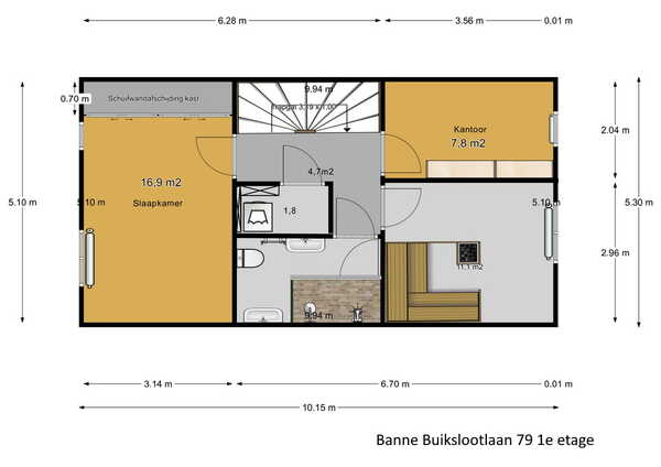 The small back room has room for a single bed and is also very suitable as an office. The cupboard wall remains.