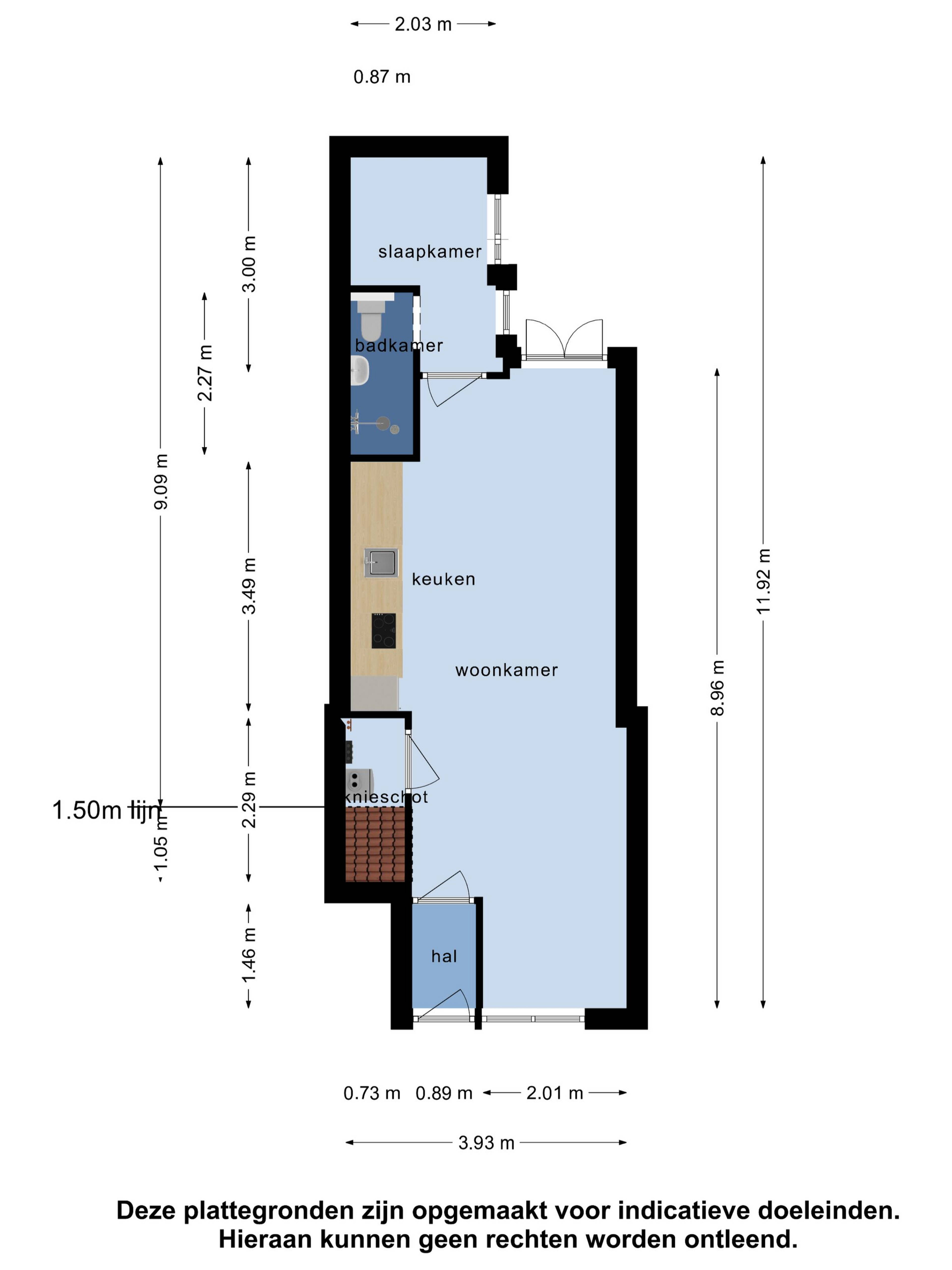 Daarnaast vind je nog de doorgang naar zowel de badkamer als de slaapkamer, die naast elkaar gesitueerd zijn.