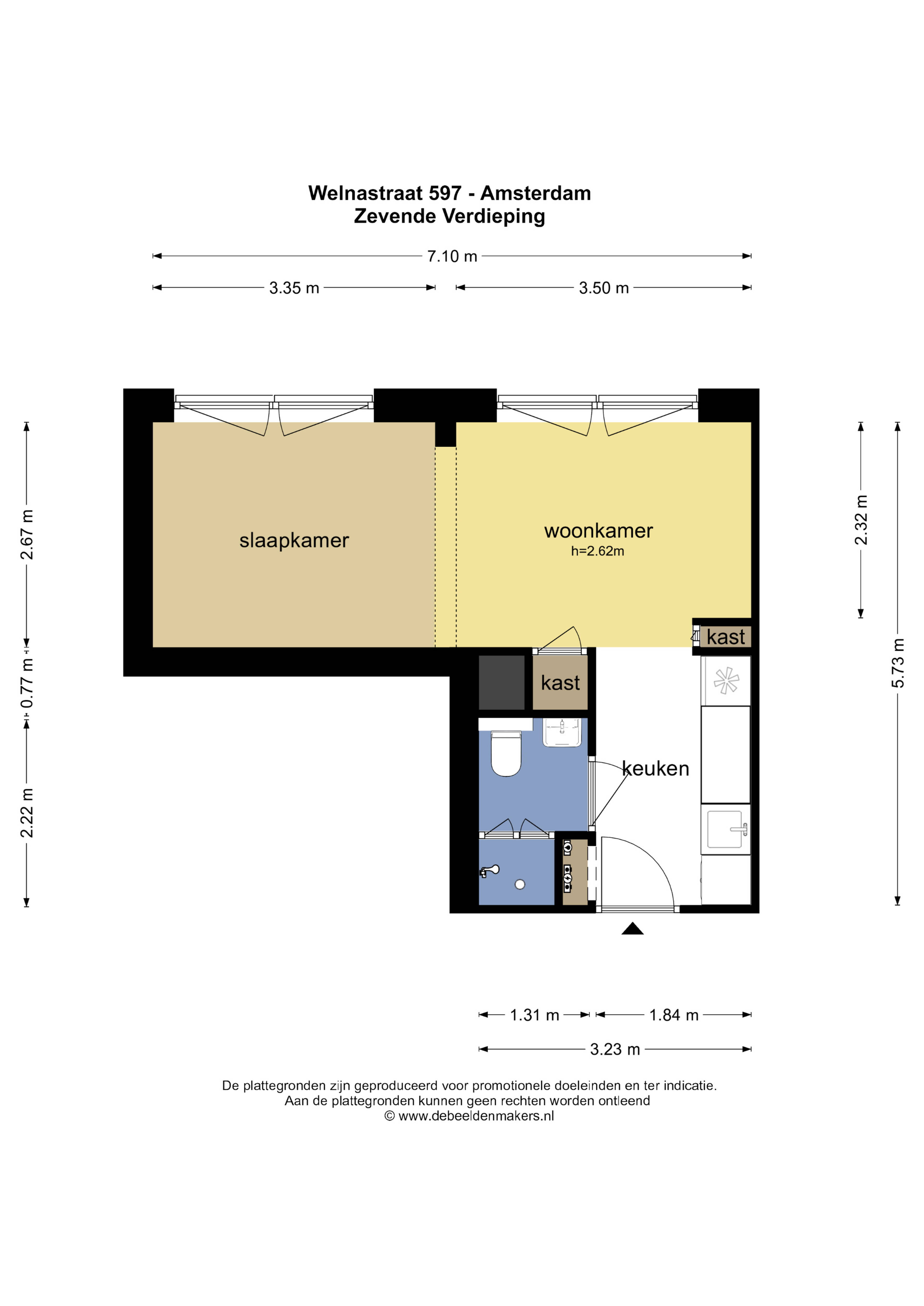 Luxe studio gelegen op de zevende (hoogste) verdieping van van een in 2014 hoogwaardig afgewerkte appartementen complex 'Villa Mokum’.