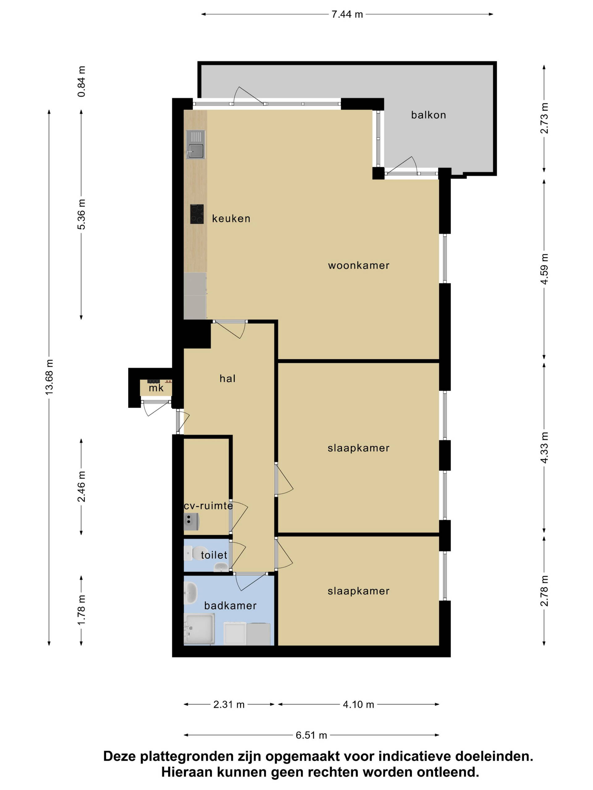 Experience the luxury of this apartment with its extensive kitchen and spacious living and dining room. Both bedrooms are perfect as full-fledged bedrooms, and the bathroom is neatly furnished with a walk-in shower and washbasin. The toilet is located in a separate room opposite the bedrooms.