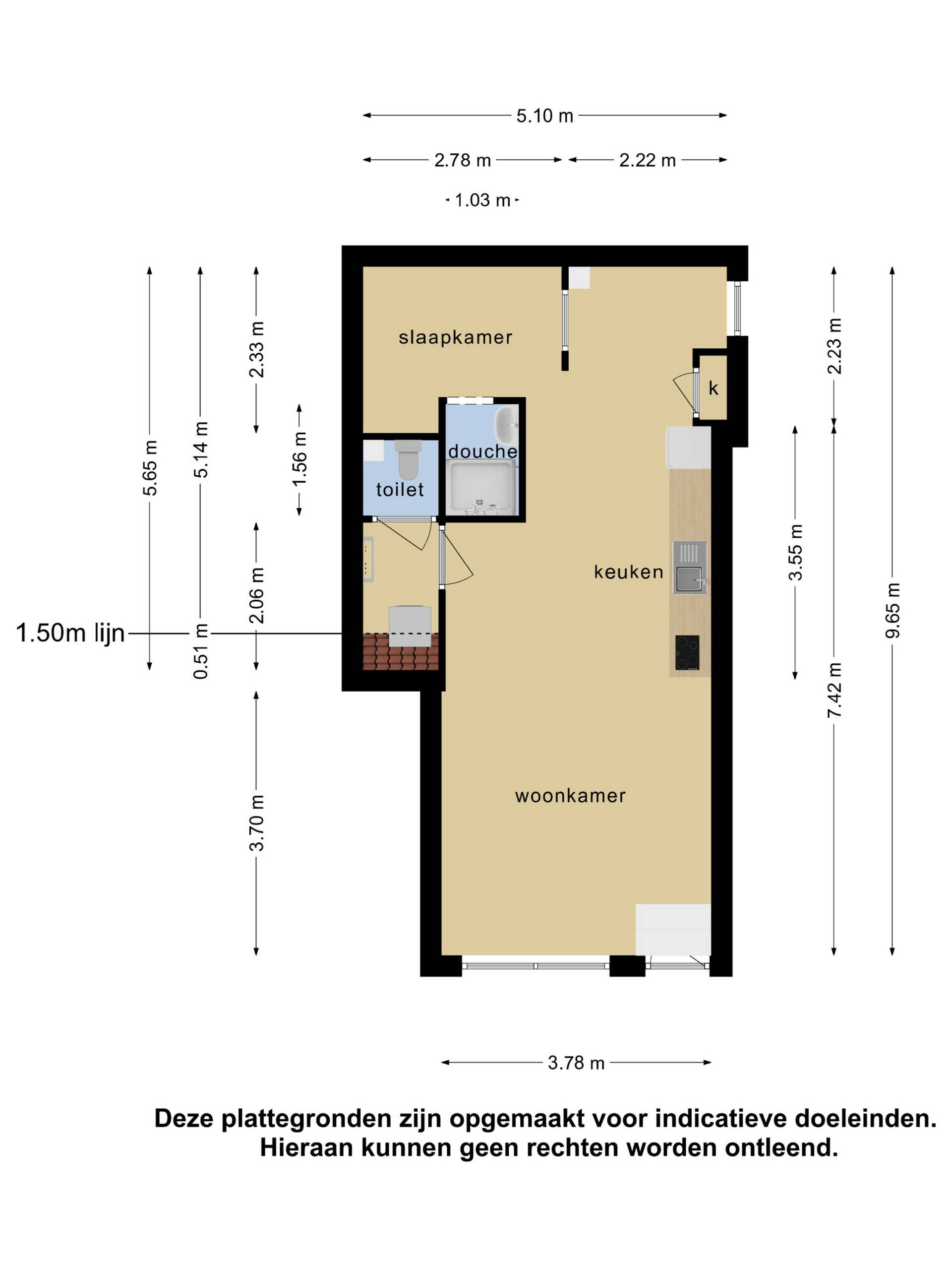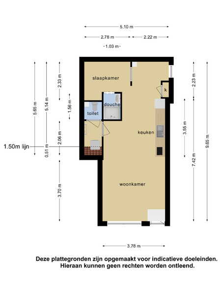 Woonoppervlakte circa 43 m2, inhoud: 129 m3;