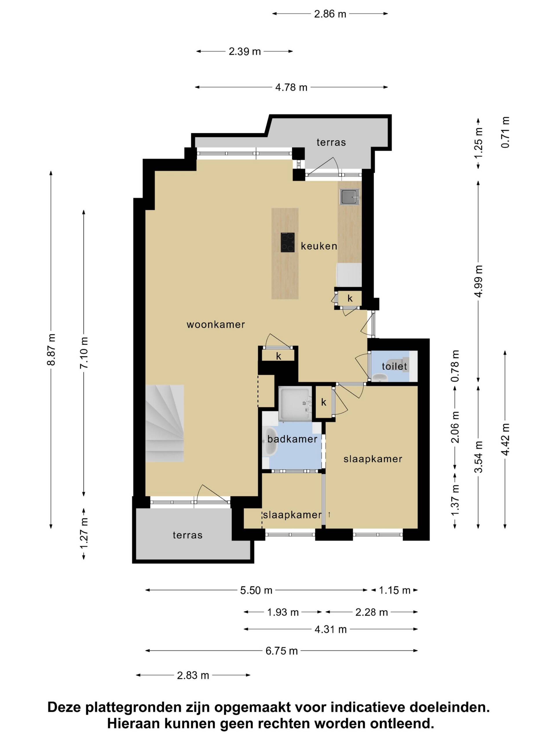 With the stairs you come out in the roof house which is now used as a home office. Here you have direct access to the large roof terrace. Work with the feeling of being outside and in the breaks relax on the roof terrace.