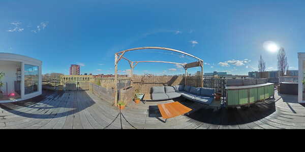 Vanaf het riante dakterras heb je een prachtig uitzicht over de buurt. Je treft hier een hardhouten luxe houten vloer aan. Daarnaast is het dakterras voorzien van een pergola, waaronder je perfect kunt loungen en dineren.