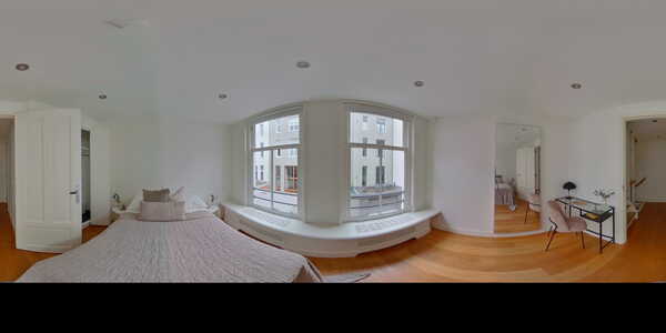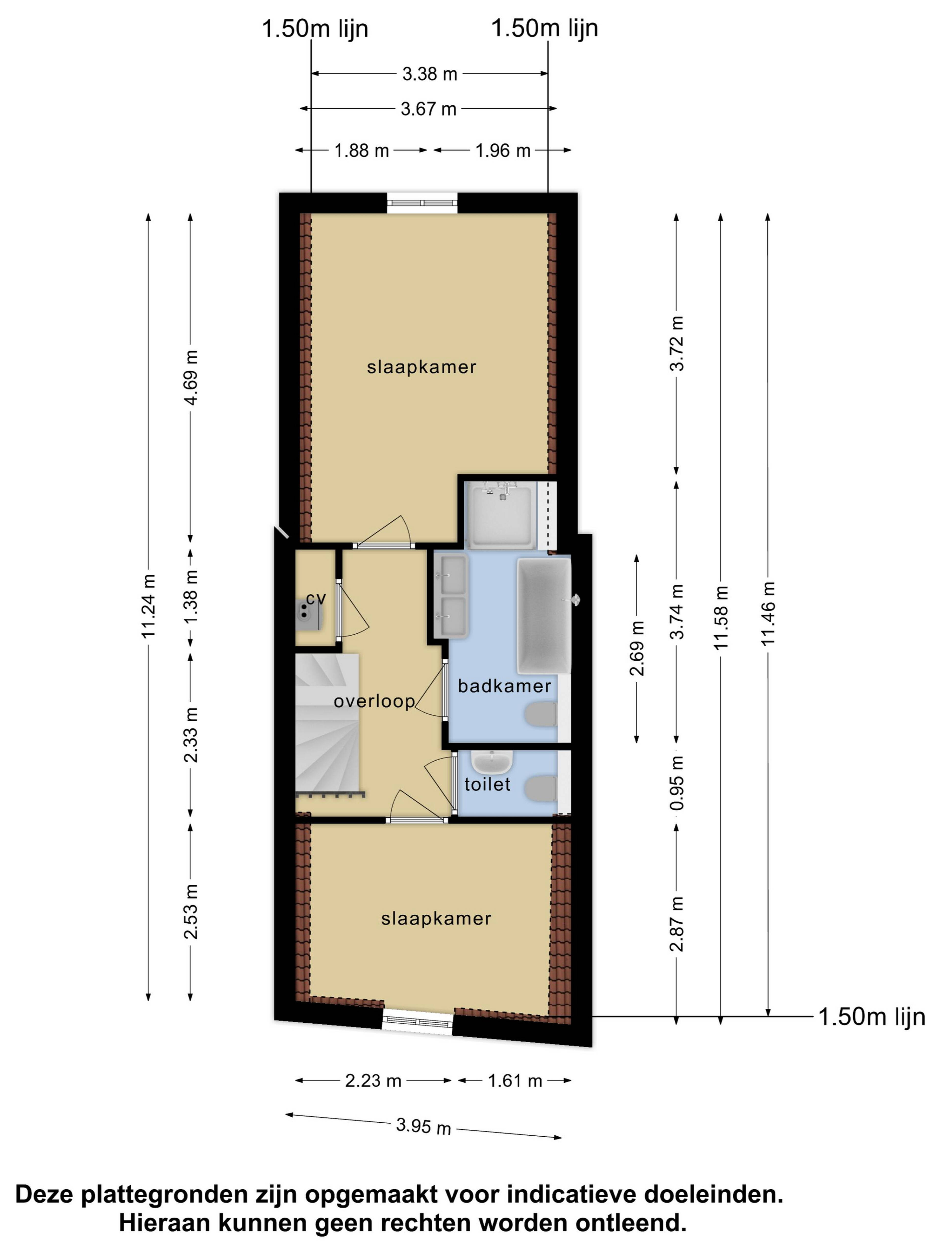 Nog een verdieping hoger is aan de voorzijde de kleinste slaapkamer gelegen, met voldoende ruimte voor een eenpersoonsbed. Het is ook mogelijk om hier een thuiskantoor te creëren. De masterbedroom is aan de achterzijde gelegen en ook hier zijn de mooie authentieke houten balken en mansarde kap zichtbaar. Er is voldoende ruimte voor een tweepersoonsbed en een grote kledingkast. De badkamer op deze verdieping is ruim, licht en volledig betegeld, voorzien van een inloopdouche, ligbad, wastafelmeubel en toilet.