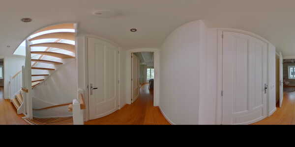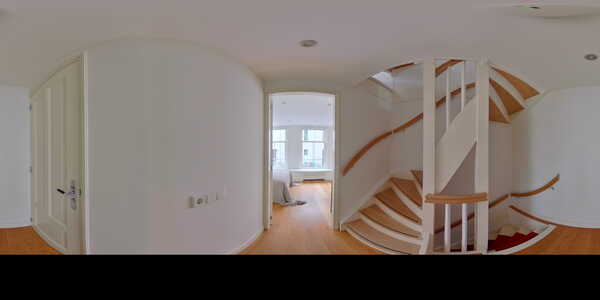 Via de gemeenschappelijke entree, kom je via de beklede houten vaste trap op de eerste verdieping van deze charmante woning terecht.