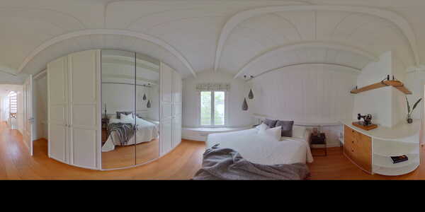 Another floor higher is located at the front the smallest bedroom, with enough space for a single bed. It is also possible to create a home office here. The master bedroom is located at the rear and here too the beautiful authentic wooden beams and mansard roof are visible. There is ample space for a double bed and a large closet. The bathroom on this floor is spacious, bright and fully tiled, equipped with a walk-in shower, bathtub, washbasin and toilet.