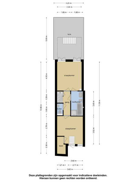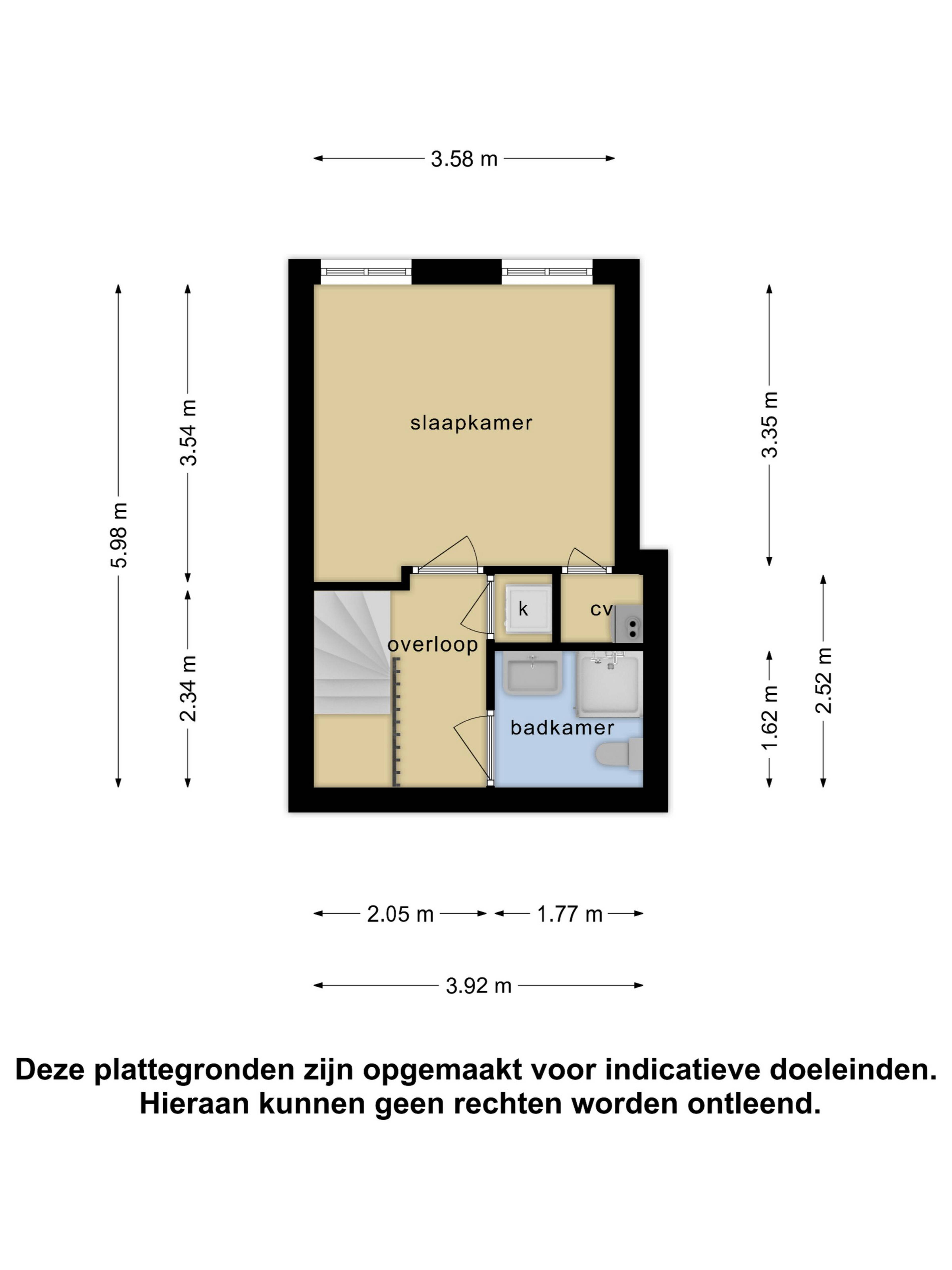 Via de hal zijn meerdere deuren toegankelijk, aan de voorzijde is de slaapkamer gelegen, welke toegang biedt tot de straat.