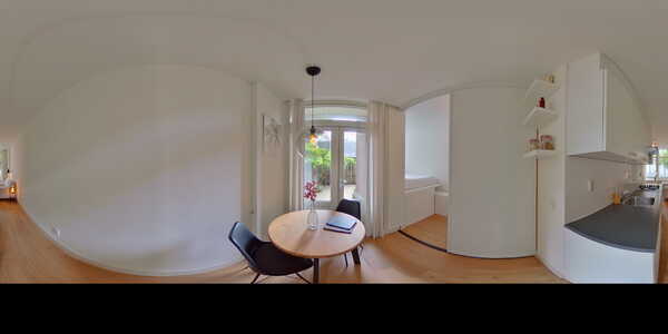 The building can be entered via a central entrance from where you gain access to the front door of the living studio. You enter the living room.