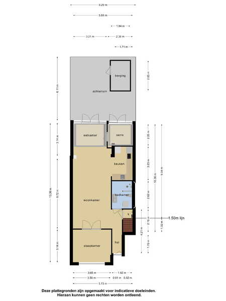 Bij binnenkomst betreed je een hal die direct overloopt in de ruime woonkamer. De woonkamer kenmerkt zich door de ruimte en de overvloed aan natuurlijk licht, gecreëerd door de uitbouw met glazen dak aan de achterzijde. Hier is dan ook voldoende plek voor een comfortabel zitgedeelte, een eetgedeelte en een moderne keuken.