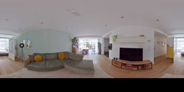 Upon entering you enter a hallway that leads directly into the spacious living room. The living room is characterized by the space and the abundance of natural light, created by the extension with glass roof at the rear. Here is therefore sufficient space for a comfortable seating area, a dining area and a modern kitchen.