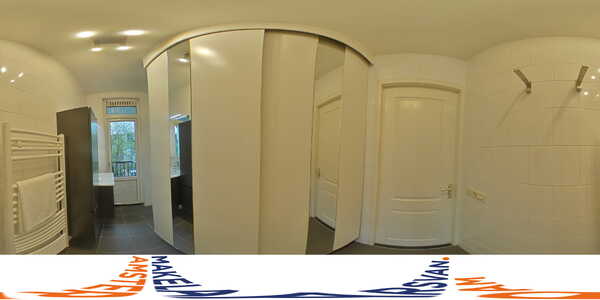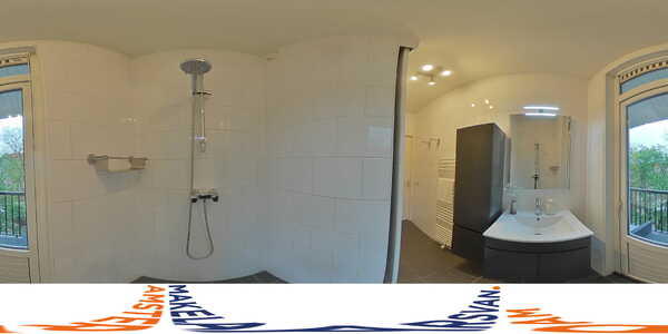 De moderne badkamer, bereikbaar vanuit de hal, verwent met zijn stijlvolle inrichting. Een inloopdouche, wastafel met spiegel, handdoekradiator en opbergmeubel maken deze ruimte zowel praktisch als elegant.