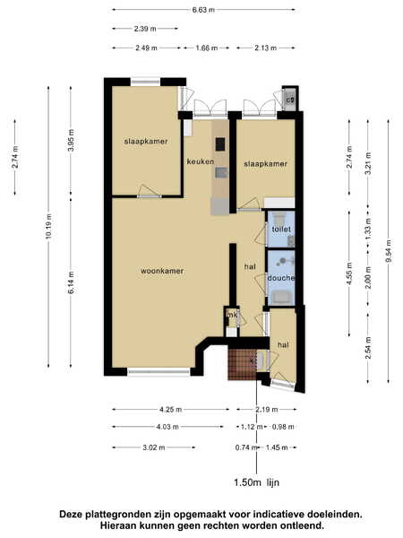 60 m2 3 kamers 2 slaapkamers