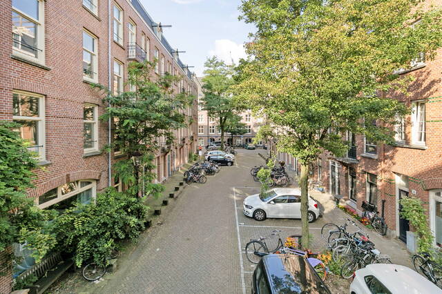 Het appartement is gelegen in de populaire Staatsliedenbuurt, een buurt die bekend staat om zijn karakter en talrijke voorzieningen. Binnen enkele minuten ben je bij diverse scholen, sportclubs, supermarkten en winkels. De bereikbaarheid is uitstekend met openbaar vervoer zoals trams en bussen op loopafstand. Voor wie van groen houdt, ligt het Westerpark om de hoek, een perfecte plek voor een ontspannen wandeling. Het centrum van Amsterdam is snel en gemakkelijk te bereiken, waardoor je kunt genieten van zowel rust als levendigheid.
