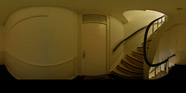Through the communal entrance, you enter the staircase leading to the private front door on the first floor.