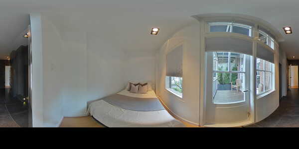 De knusse slaapkamer is voorzien van een groot raam en een deur naar het balkon, waardoor de ruimte fris en licht aanvoelt. Deze slaapkamer is direct verbonden met de luxe badkamer en-suite. Hier tref je een moderne afwerking met een ruime inloop regendouche, een wastafelmeubel met dubbele waskommen en geïntegreerde kranen, en een designradiator.