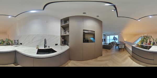 Grenzend aan de woonkamer bevindt zich de moderne open keuken. Deze is volledig uitgerust met hoogwaardige apparatuur, waaronder een inductiekookplaat, Quooker, ingebouwde oven, vaatwasser en koelkast. Het slimme ontwerp biedt niet alleen veel opbergruimte, maar ook een stijlvolle uitstraling.