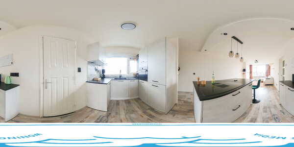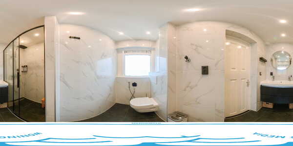 Een zijdeur bij de keukenruimte biedt toegang tot de ruime badkamer. Deze lichte badkamers is van vele gemakken voorzien. Wat te denken van een regendouche, een wastafelmeubel met dubbele kranen, een wandcloset met handdouche en de wasmachineaansluiting. Het plafond is voorzien van LED inbouwverlichting