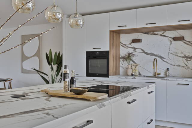 De moderne leefkeuken – met directe toegang tot het terras – is voorzien van hoogwaardige inbouwapparatuur, een royaal kookeiland en voldoende plek voor lange diners en goede gesprekken. Kook je graag? Dan ga je hier helemaal los.