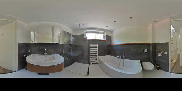 Op de eerste verdieping bevinden zich drie slaapkamers (twee met airco) en een moderne badkamer met inloopdouche, ligbad, wastafelmeubel en toilet. De tweede verdieping herbergt de vierde slaapkamer (met airco), een open werkkamer met dakkapel, een tweede badkamer met douche en wastafel, en ruimte voor de wasapparatuur.