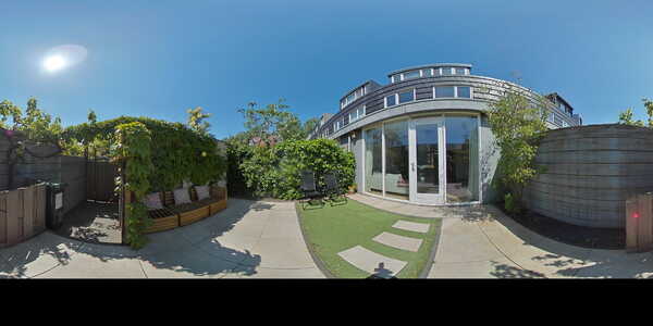 De tuin ligt op het zuidwesten en is in 2020 opnieuw aangelegd met moderne bestrating, kunstgras en een ruime berging. Je hebt hier de hele dag zon. Aan de achterzijde is een privéparkeerplaats en op 100 meter afstand ligt je eigen steiger (nr. 19) – ideaal voor varen op het IJmeer.