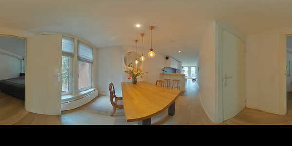 De woning beschikt over een lichte woonkamer aan de voorzijde met grote ramen en handige inbouwkasten. In de versmalling tussen de woon- en eetkamer bevindt zich de moderne open keuken (oktober 2022), voorzien van inbouwapparatuur zoals een Bora inductiekookplaat, afzuigkap, combi-oven, koelkast met vriesvak en een nieuwe vaatwasser. Aan de achterzijde bevindt zich de eetkamer, met uitzicht op een groen en stil binnenterrein. De slaapkamer ligt eveneens aan de achterzijde en biedt volop rust en ruimte voor een tweepersoonsbed.