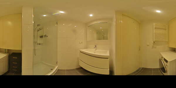 De badkamer is eveneens in 2022 gerenoveerd en beschikt over een douchecabine, wastafelmeubel, wasmachineaansluiting en designradiator. De afwerking is hoogwaardig, met een eikenhouten parketvloer, strakke wandafwerking, kunststof kozijnen en dubbele beglazing.