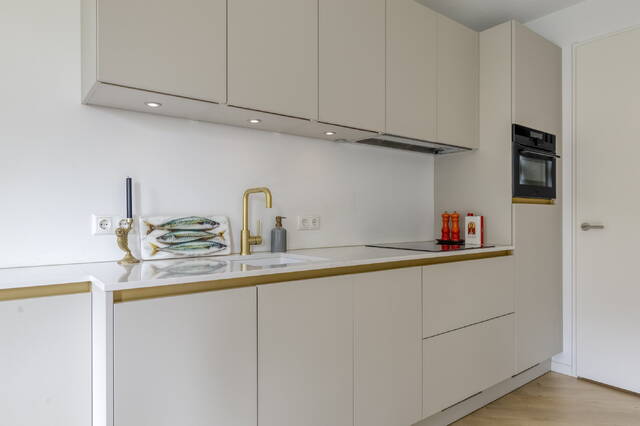 De woonkamer en keuken zijn slim ingedeeld en profiteren van veel licht. Met het balkon op het zuiden zit je in de zomer de hele dag in de zon, van je eerste kop koffie in de ochtend tot een glas wijn in de avond. De moderne afwerking en frisse uitstraling geven het appartement een huiselijk en tegelijk stijlvol karakter.