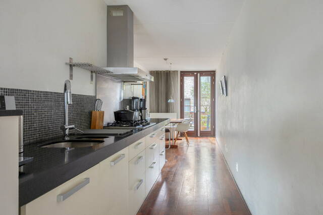 De Cruquiuskade maakt deel uit van het Oostelijke Havengebied, een wijk die de afgelopen jaren sterk is ontwikkeld tot een van de meest gewilde woonplekken van Amsterdam. Historische pakhuizen en moderne architectuur wisselen elkaar af, wat de buurt een uniek en stedelijk karakter geeft. Op loopafstand bevinden zich de Czaar Peterstraat met haar speciaalzaken en cafés, het Funenpark als groene oase, en diverse restaurants en voorzieningen langs de kade. Binnen enkele fietsminuten bent u in het centrum, het Oosterdok of bij het Centraal Station. Ook de uitvalswegen richting de ring A10 zijn snel bereikbaar, en er zijn goede verbindingen met het openbaar vervoer.