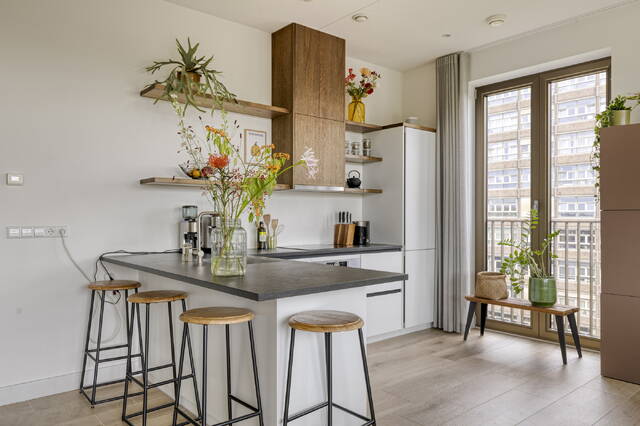 Welcome to Poeldijkstraat 305: a stylish and bright apartment of 104 m² in a modern 2018 building. With three-metre-high windows, a large east-facing balcony and sweeping views over the city and greenery, this is the perfect place for young families and anyone who wants the best of urban living combined with peace and space. Here you’ll enjoy all the comforts of new construction while living in a vibrant and warm neighbourhood.