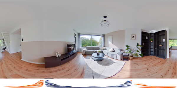De woonkamer en eetkamer vormen samen een lichte doorzonruimte met grote raampartijen