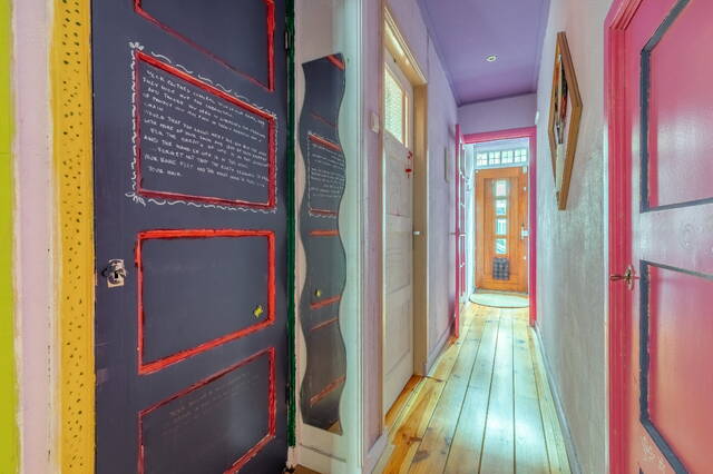 You enter the apartment via a central hallway. On the right-hand side is the bedroom, located at the front of the property. This room is bright, quiet, and spacious enough for a double bed and wardrobe.