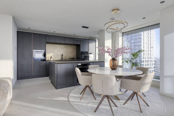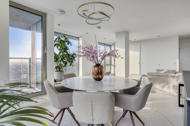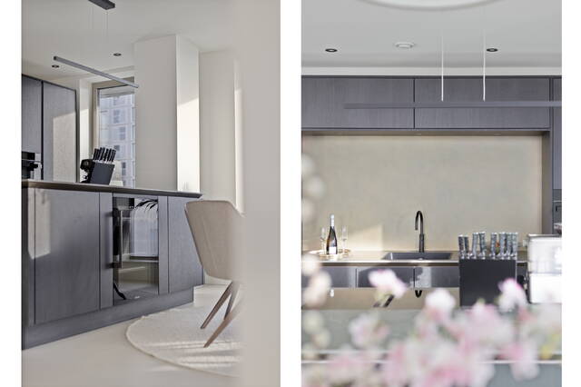The finishes are sleek, modern and of high quality throughout. The Siematic kitchen forms the heart of the apartment: equipped with premium appliances, generous workspace and a timeless, calming aesthetic. Cooking here is a pleasure — whether preparing an elaborate dinner or a quick meal.