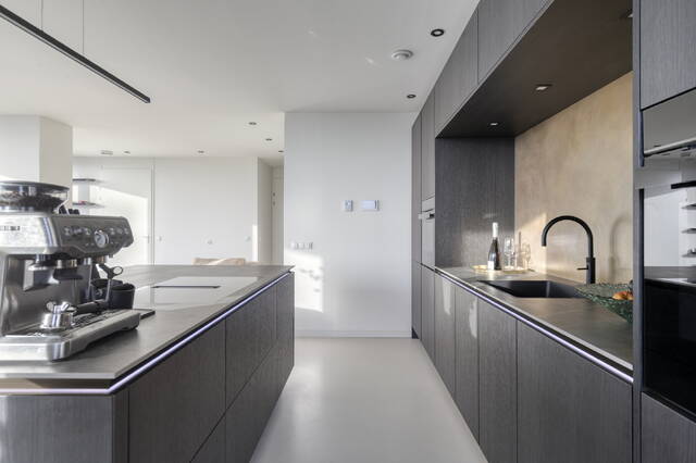 De afwerking is strak, modern en hoogwaardig. De Siematic keuken vormt het hart van de woning: uitgerust met premium apparatuur, voldoende werkruimte en een rustige, tijdloze uitstraling. Hier kook je met plezier — of je nu uitgebreid dineert of snel een maaltijd maakt.
