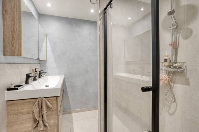De twee goed bemeten slaapkamers bieden volop flexibiliteit: ideaal als hoofdslaapkamer, logeer- of werkkamer, of voor een stel/klein huishouden. De ruime badkamer is luxe uitgevoerd met een ligbad, regendouche, brede dubbele wastafel en veel bergruimte, een echte wellnesshoek in huis.