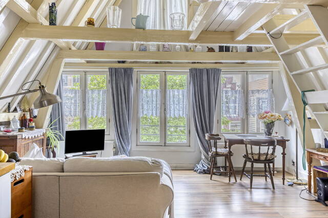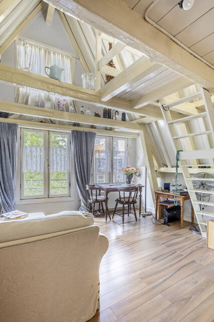 Characterful details: high ceilings, wood beams, large windows