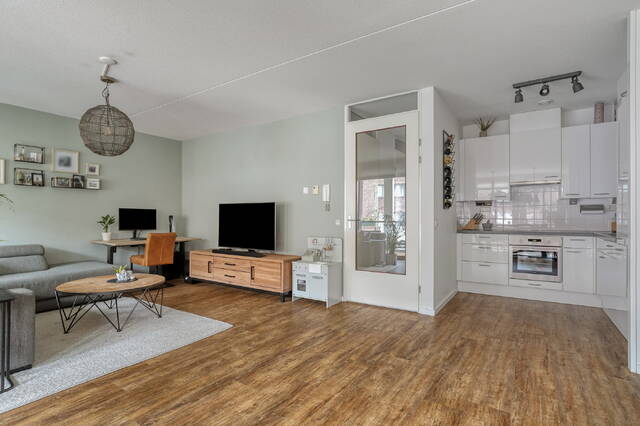 Dit goed ingedeelde appartement van circa 92 m² ligt op de begane grond van een verzorgd complex uit 2008 en biedt alles wat je van modern wonen mag verwachten. De ruime woonkamer vormt het hart van de woning en voelt dankzij de prettige maatvoering en grote ramen heerlijk open en licht aan. De prachtige PVC vloer met industriële toplaag geeft het geheel een stoere, tijdloze uitstraling en zorgt tegelijkertijd voor comfort en onderhoudsgemak.