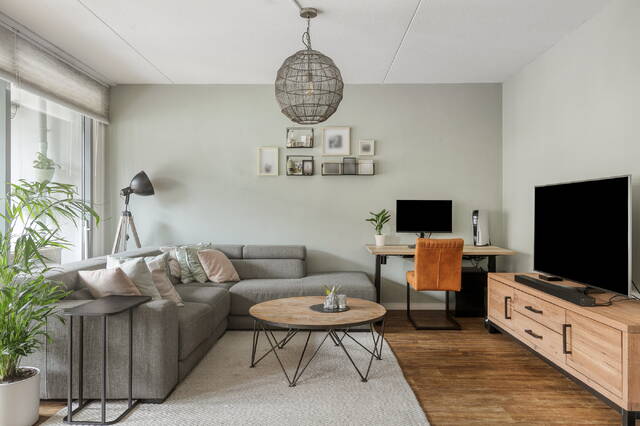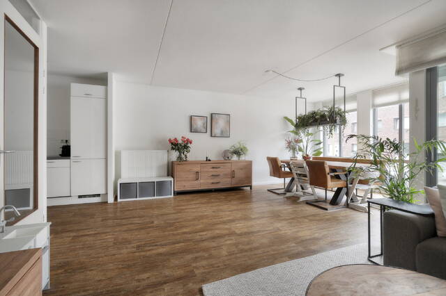 This well-laid-out apartment of approximately 92 m² is located on the ground floor of a well-maintained building from 2008 and offers everything you expect from modern living. The spacious living room forms the heart of the home and feels wonderfully open and bright thanks to its pleasant proportions and large windows. The beautiful PVC floor with industrial top layer gives the apartment a robust, timeless look while remaining comfortable and easy to maintain.